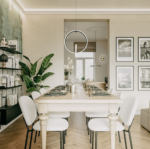 Eklektyzm stał się motywem przewodnim całego projektu, zastane detale zostały dopełnione nowoczesnymi formami i strukturami.
