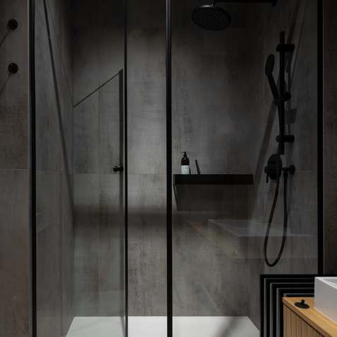 Loftowy klimat w nadmorskiej nieruchomości? Czemu nie! Mieszkanie wakacyjne miało pomieścić 5 osobową rodzinę i w okresie letnim stać się ich oazą. Metal, drewno, cegła- główne motywy, dodające wnętrzu niesamowicie wyrafinowanego charakteru. Ponadto idealnie współgrają z panującymi odcieniami szarości i błękitu.