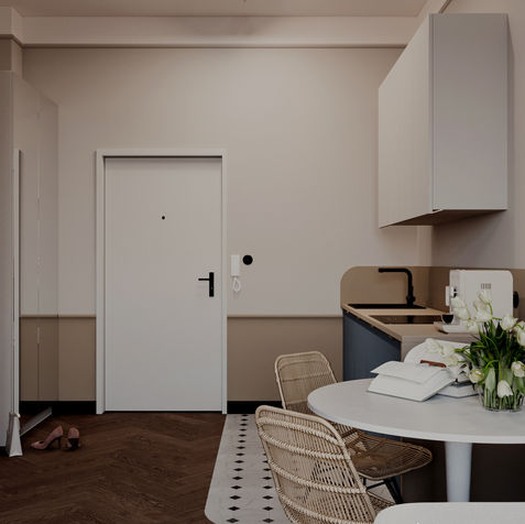 Mieszkania zlokalizowane w klasycystycznej kamienicy w centrum miasta. Miały nawiązywać do kontekstu miejsca i być przede wszystkim atrakcyjną i wyjątkową ofertą na rynku sprzedaży i wynajmu. Projekt został przygotowany w dwóch wariantach kolorystycznych bazując na ogólnodostępnych materiałach, lokalnych rzemieślnikach i ograniczonym budżecie.